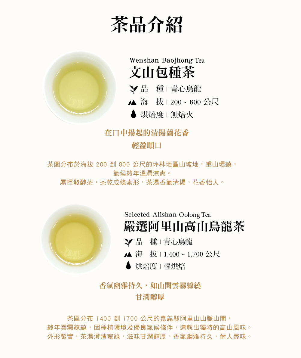 【內容】文山包種茶 75g/罐、日月潭紅玉紅茶 40g/罐、嚴選阿里山高山烏龍茶 75g/包、嚴選凍頂烏龍茶 75g