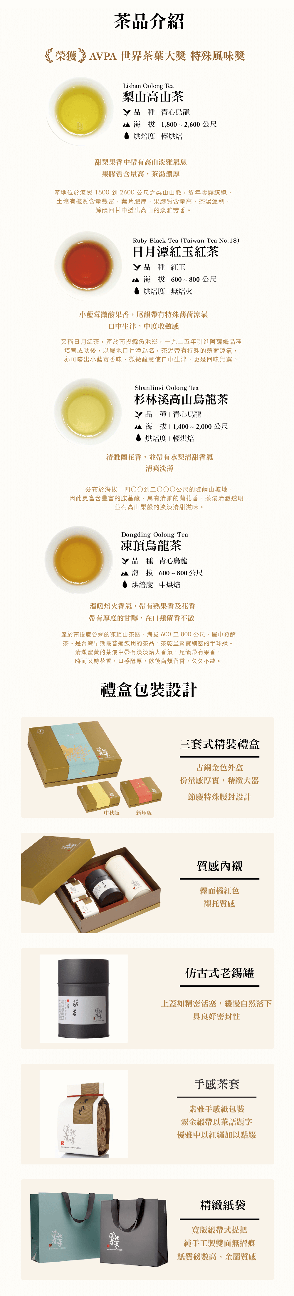 【得獎】榮獲法國AVPA世界茶葉大獎(梨山高山茶、凍頂烏龍茶)、台灣百大伴手禮 第一品牌獎