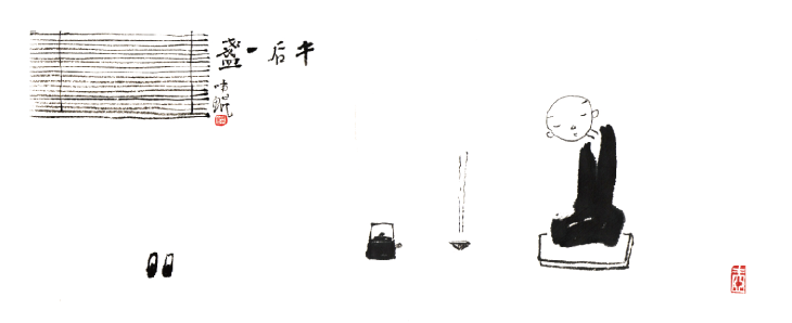 此畫即以和尚家風、飯後一盞茶為例,闡明生活即禪、吃茶即禪、當下即禪。
